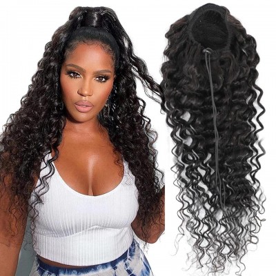 Stema Deep Wave Drawstring Ponytail With Clips 100% Human Hair Extensions