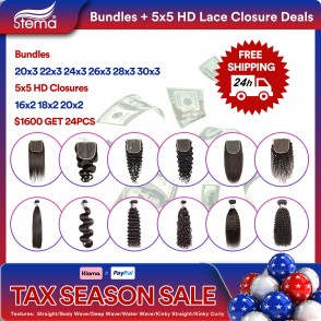 #Package Deals 24pcs 5x5 HD Lace Closures With Virgin Human Hair Bundles