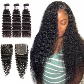 Stema Virgin Deep Wave Hair With 5x5 HD & Transparent Lace Closure