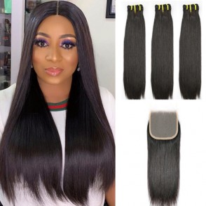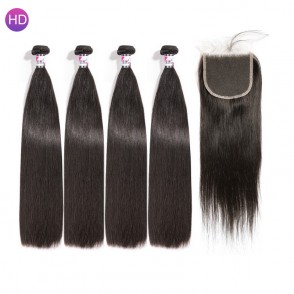 Stema Straight Virgin Hair With 5x5 Transparent Lace Closure