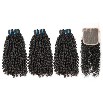 Stema Double Drawn Pissy Curly Virgin Human Hair With 4x4 Lace Closure